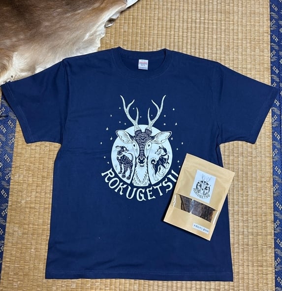 岡本 瑛里 ⁄ OKAMOTO Ellie デザイン 鹿月Tシャツ半袖 紺色 L